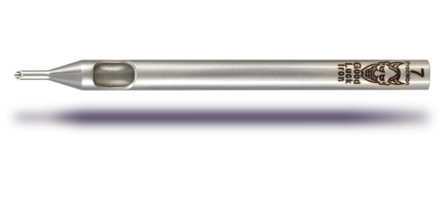 Round Angle Cut Liner Tube in surgical grade Stainless Steel, from the Original range from Good Luck Iron. Good for thicker line work, angle cut for b..
